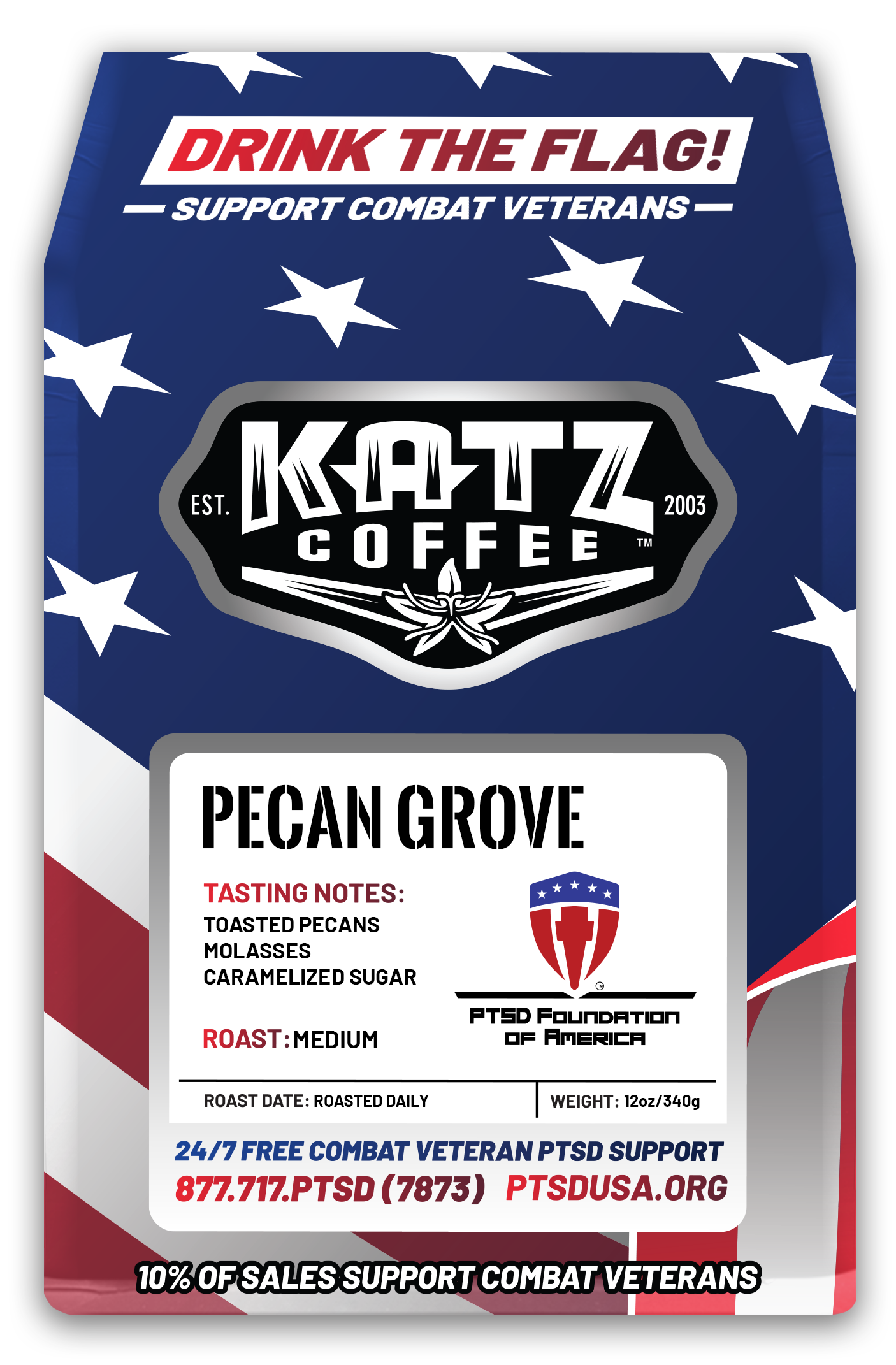 Dark roast cause coffee in partnership with the PTSD Foundation. Featuring tasting notes of dark chocolate, orange citrus, tobacco and molasses